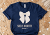 She is Worthy Coquette Bow SVG PNG, Women’s Christian Shirt Svg, Cute Christian Coquette Designs, Girly Faith Shirt Ideas, Trendy Christian Shirt Ideas,